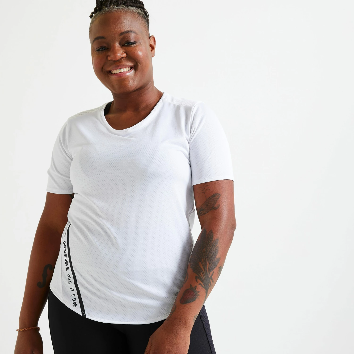 The ultimate short-sleeved close-fitting T-shirt that is a must-have for practising a sport. With a close-fitting cut that shows off your curves, dropped sleeves and lightweight breathable fabric, you’re sure to fall in love!Product Benefits