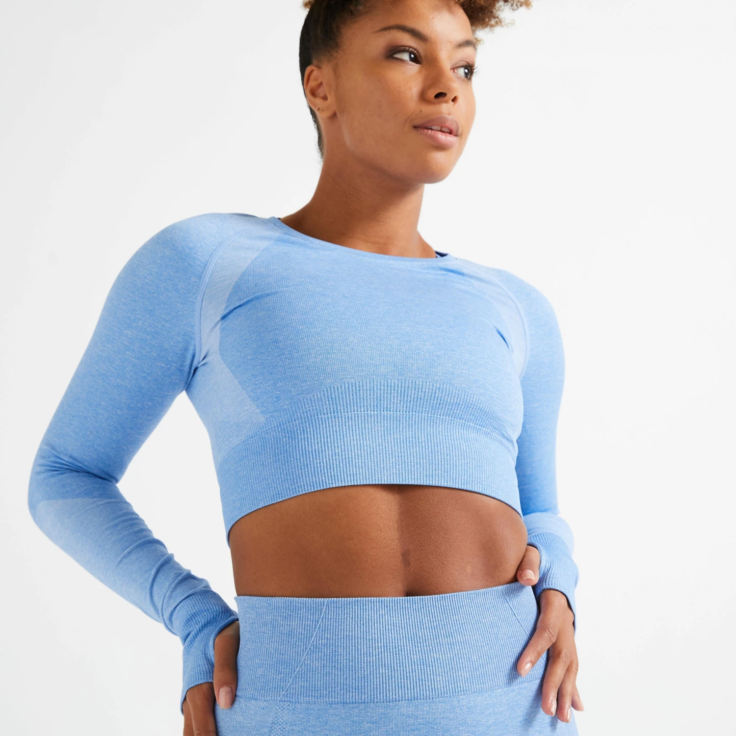 A long-sleeved, cropped T-shirt with all the technical features you need to perform at your best during your fitness workouts. This T-shirt embodies our technical expertise and sense of style. It’s technical thanks to its soft, stretchy, comfortable, eco-friendly fabric. And it’s stylish because of its chic cropped cut.Product Benefits