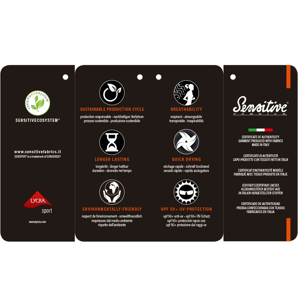 - Certificate of Authenticity garment produced with fabrics made in Italy